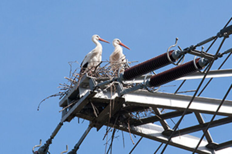 Bild vom Mast 3 im Jahr 2015 zeigt zwei Störche bei der Paarung